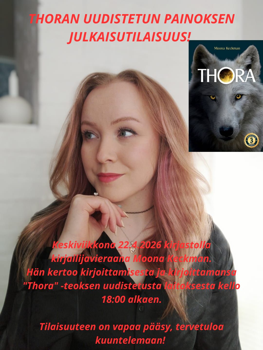 Keskiviikkona 22.4.2026 kirjastolla kirjailijavieraana Moona Keckman.