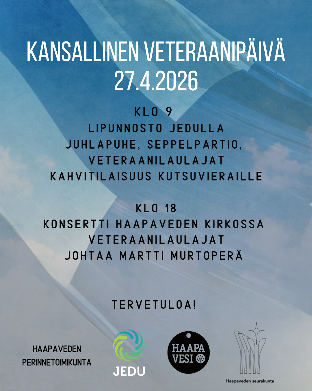 Illalla klo 18 konsertti Haapaveden kirkossa. Esiintymässä Veteraanilaulajat johtajanaan Martti Murtoperä.